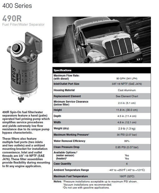 RacorStoreRACOR 490R30 Marine 400 Series spin-on fuel filter/water separators are available in 4 sizes to fit any engine compartment. 400 Series mounting hea...